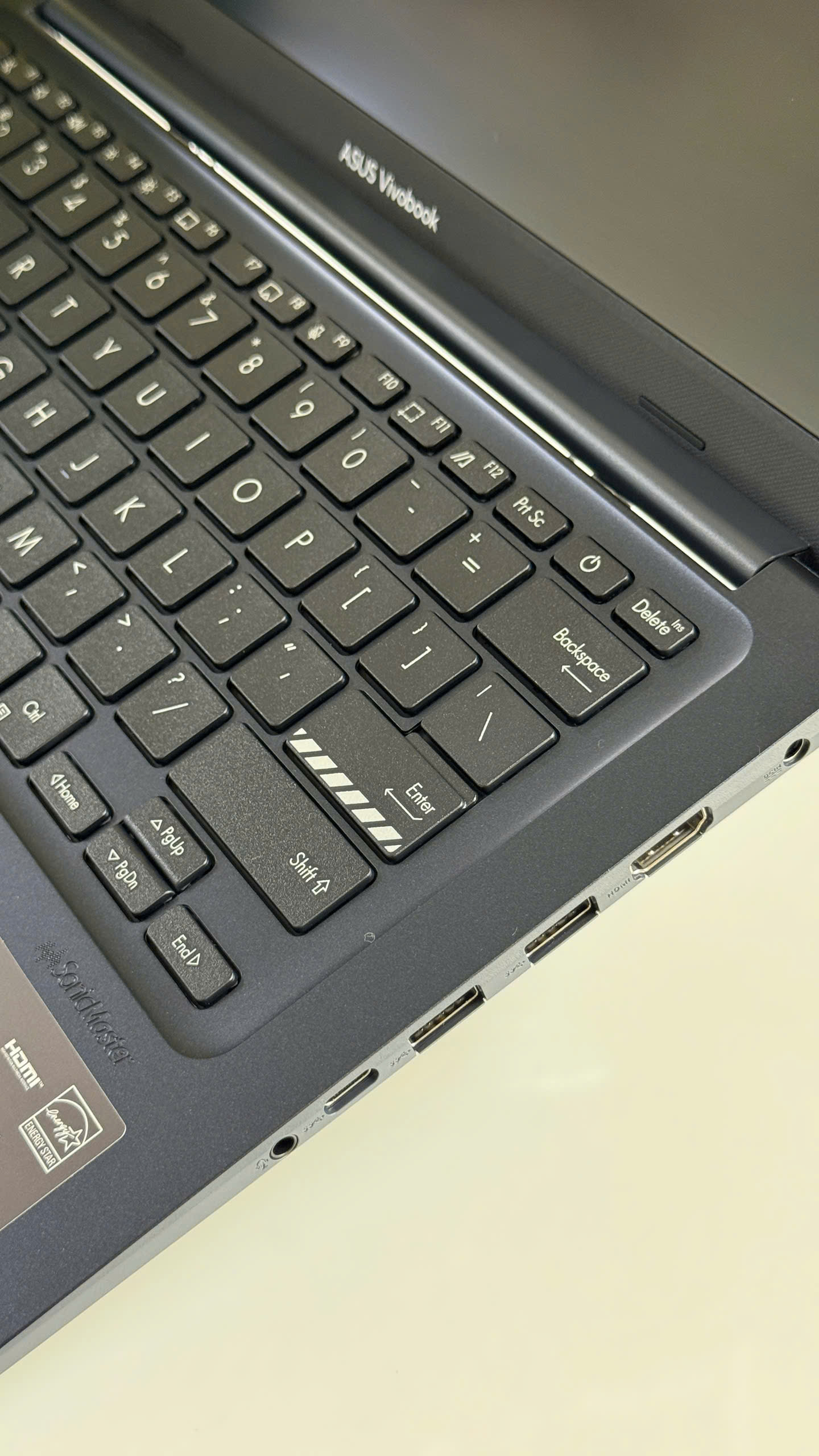 Màn hình 14 inch với độ phân giải 1920×1080 (Full HD) của Asus VivoBook X1404VAP mang đến trải nghiệm hình ảnh sắc nét và sống động. Tấm nền chất lượng cao giúp hiển thị màu sắc chính xác và góc nhìn rộng, phù hợp cho cả công việc và giải trí.